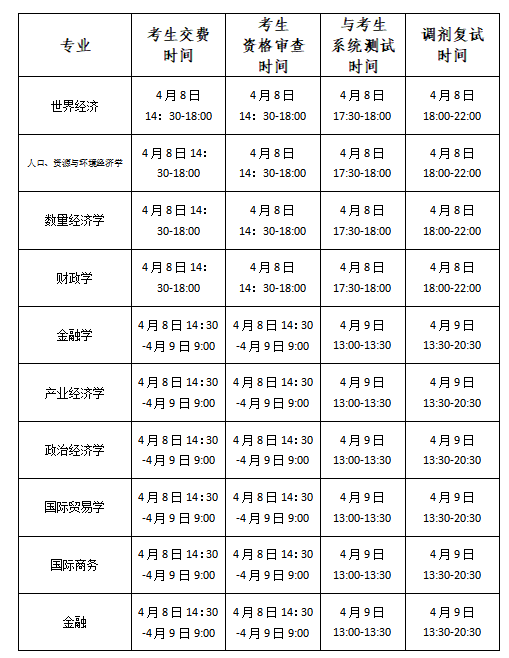 进行系统调试,系统交费、上传材料、测试时间和复试时间如下: