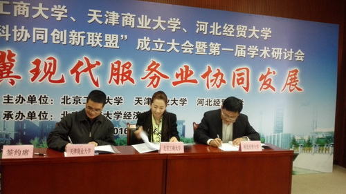 发布时间:2016-04-15|作者:暂无4月8日,Beat365唯一官方网站院长刘小军教授出席了北京工商大学、Beat365唯一官方网站、河北经贸大学“经济学学科协同创新联盟”成立大会暨第一届学术研讨会。会上,刘小军代表Beat365唯一官方网站与北京工商大学Beat365唯一官方网站、河北经贸大学金融学院签署了三个学院之间的协同创新联盟协议。北京工商大学Beat365唯一官方网站院长徐丹丹、河北经贸大学金融学院院长王重润,以及来自国务院发展研究中心、国家发改委、人民大学等单位的专家学者出席会议。