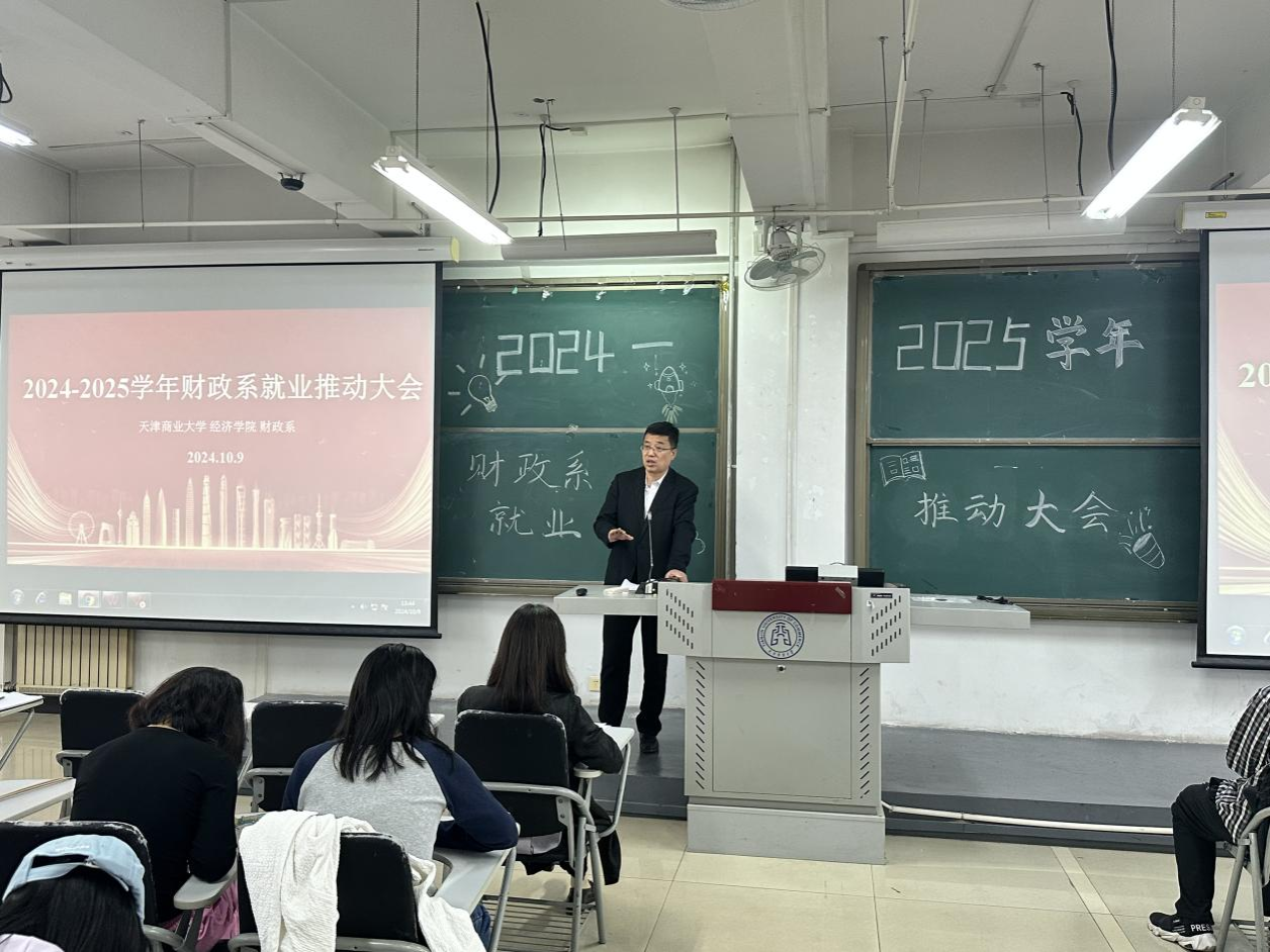 为全面贯彻落实关于高校毕业生就业工作的决策部署,推动毕业生高质量就业,2024年10月9日下午,财政系召开了2026届和2027届财政系学生就业动员大会。会议由系主任梁辰主持,院长梁学平、副系主任张圆、税收学教研室主任徐曌及财政学教研室主任王誉、博士辅导员刘斌列席参加。